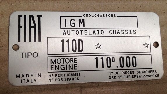 500D VIN or I.D. plate for chassis number, correct for 110D cars