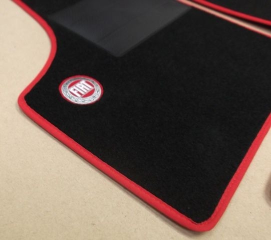 LHD Floor mat set in black with red edging and 'FIAT' badge on LH mat