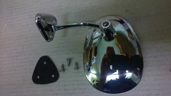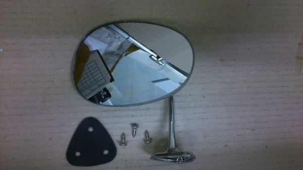 Mirror with triangular shaped foot with 3 screw fixing and 'Egg' shaped head