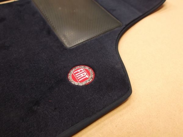 RHD Floor mat set in dark blue with dark blue edging and 'FIAT' badge on RH mat
