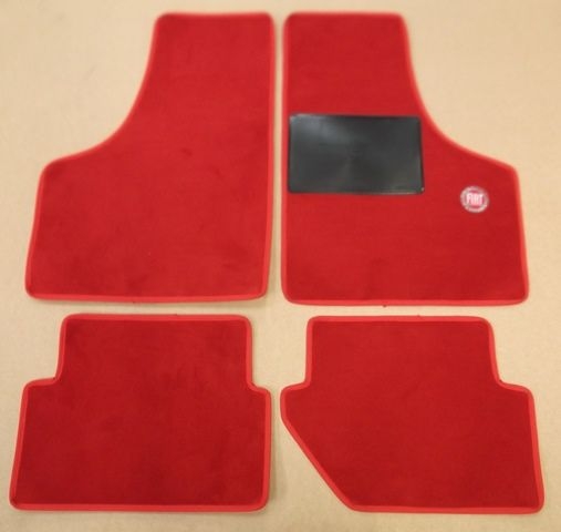 RHD Floor mat set in red with red edging and 'FIAT' badge on RH mat
