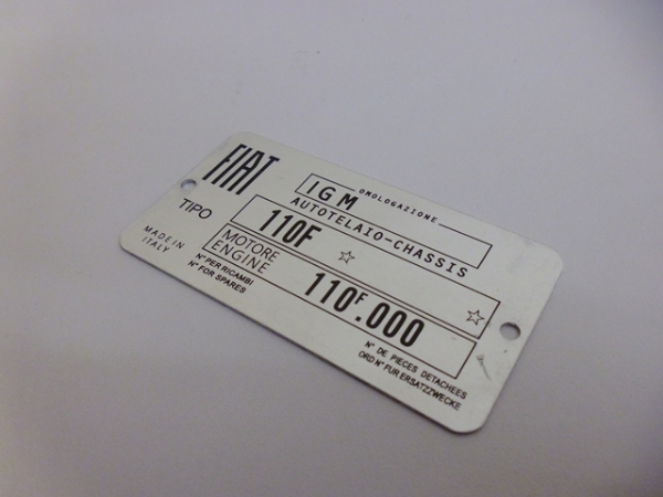 VIN or I.D. plate for chassis number, correct for 110F cars