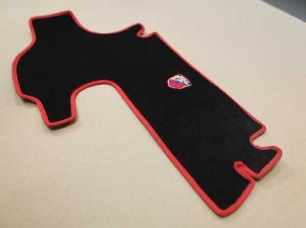 Luggage compartment carpet mat with 'Abarth' badge in black with red edging