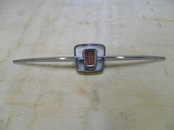 Fiat 600 front badge with wings. Chromed plastic.