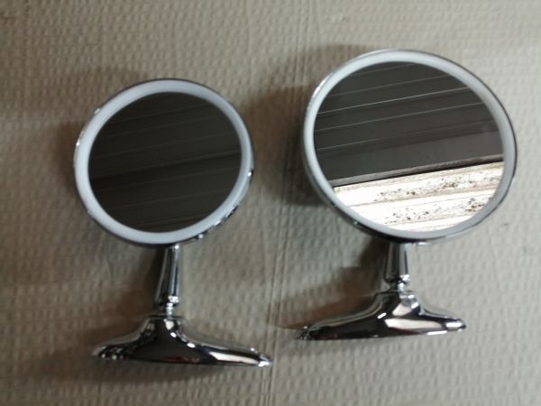 100mm Round headed chrome door mirror, with 2 screw fixing. The distance of the holes to locate the mirror are 85mm. Very good quality. Mirror on the left is 100mm and the one on the right is 125mm