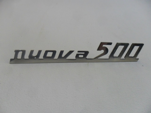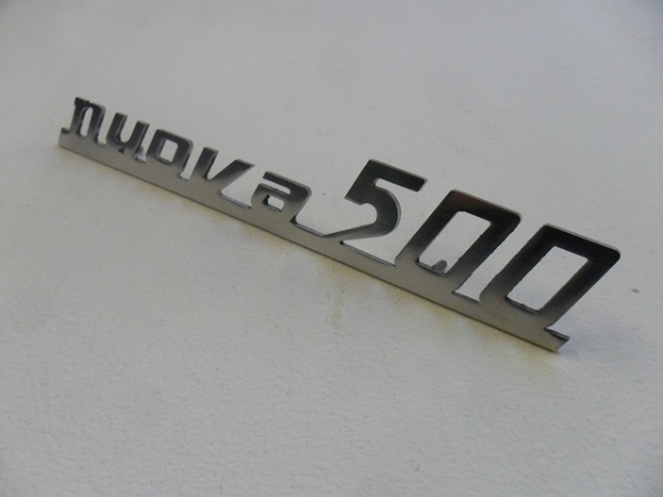 500 Nuova script badge in aluminium