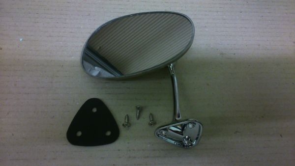 Mirror with triangular shaped foot with 3 screw fixing and 'Egg' shaped head