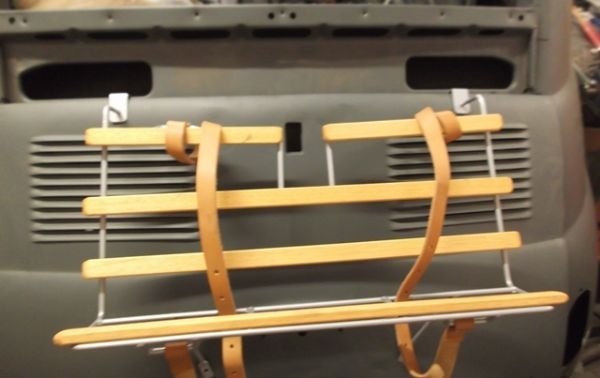Silver painted with wood luggage rack to fit on rear engine cover, come complete with luggage straps