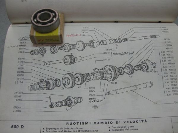 Fiat 600D gearbox bearing, original part number 4061118 or 613095, see diagram for position