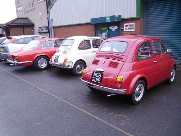 Fiat 500's and other Italian exotica outside the workshop on most days