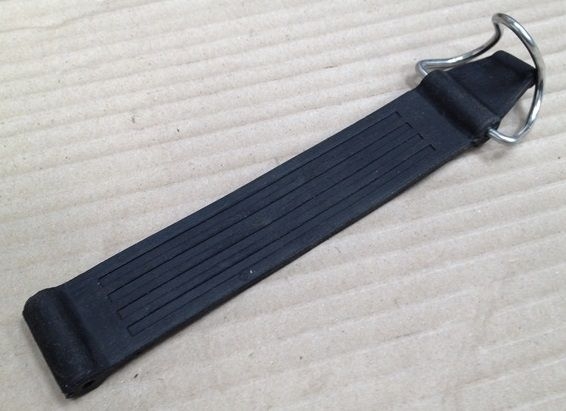 Fuel tank mounted spare wheel strap for the 500D