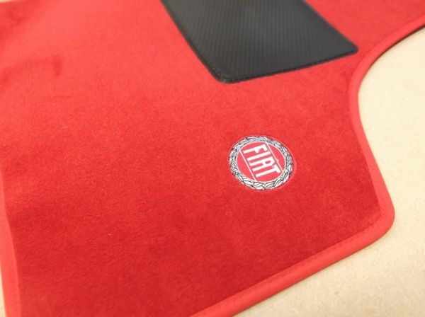 RHD Floor mat set in red with red edging and 'FIAT' badge on RH mat