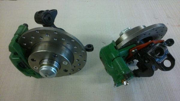 Front disc brake conversion complete with stub axles ready to fit, for use with 126 stud pattern or purchased with adaptors to suit 4 x 190mm stud pattern as original Fiat 500 wheel rims. With drilled disc's.