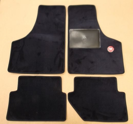 RHD Floor mat set in dark blue with dark blue edging and 'FIAT' badge on RH mat