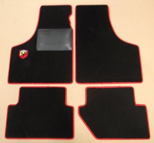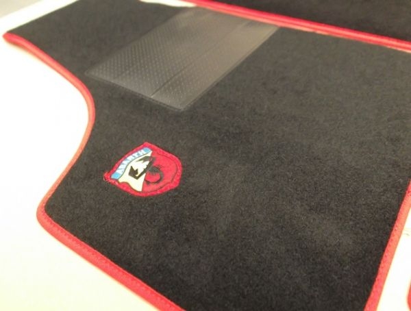 LHD Floor mat set in black with red edging and 'ABARTH' badge on LH mat