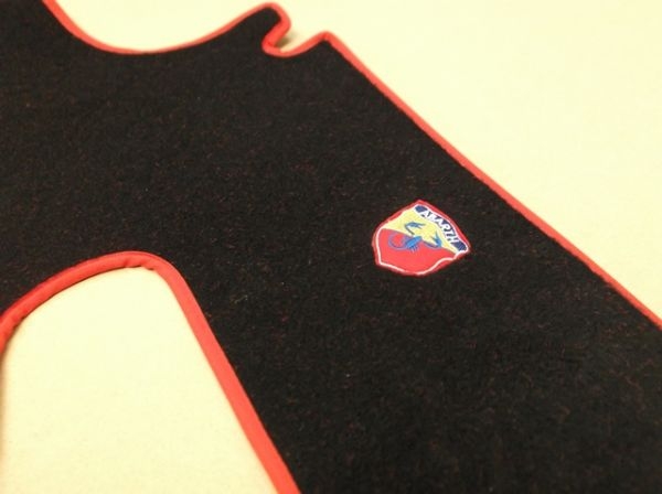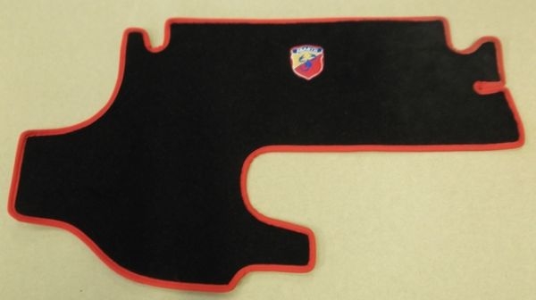 Luggage compartment carpet mat with 'Abarth' badge in black with red edging