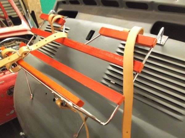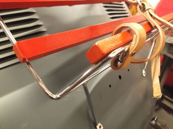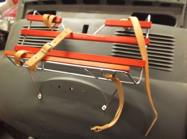 Chrome with wood luggage rack to fit on rear engine cover, come complete with luggage straps