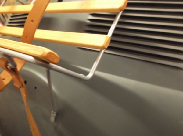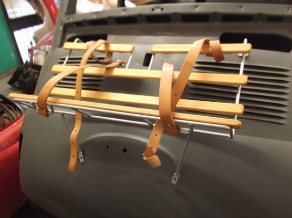 Silver painted with wood luggage rack to fit on rear engine cover, come complete with luggage straps